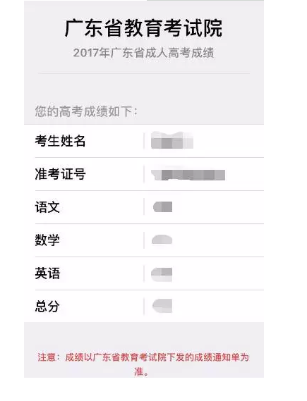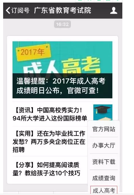 附件:2017年广东省成人高考成绩及录取结果查询方式