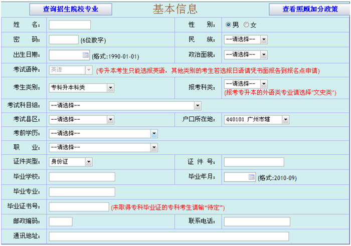(4)加分政策,凡扶贫重点开发县和山区有加分的考生,务必提交提交户口本原件和复印件,不能提供者,视作自动放弃。年满25周岁的学生不需提交。