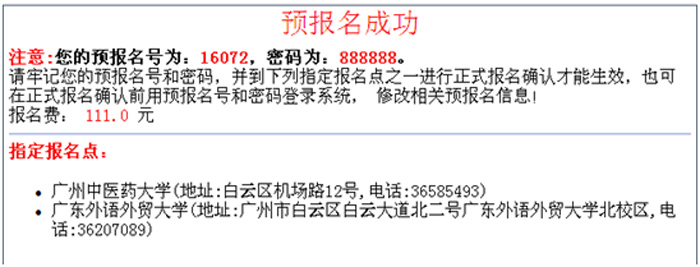 第六步:记录预报名序号和密码。预报名成功后,将预报名号填写在身份证和毕业证书复印件(复印在一张A4纸同一面此复印件在现场确认报名时要提交)右上角。