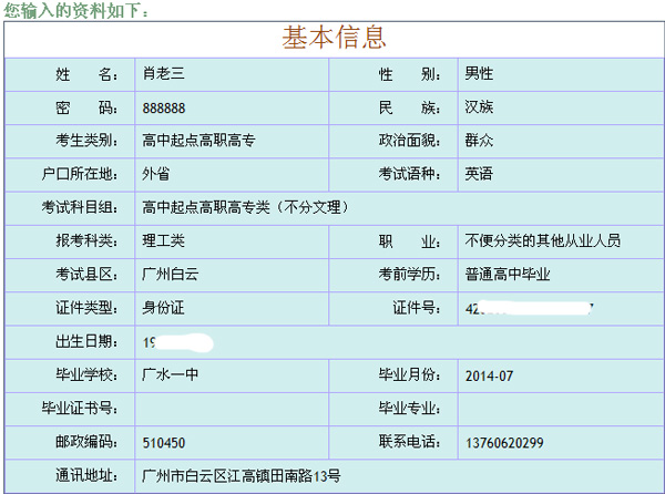 (4)无法读取身份信息(含港澳台及外籍学生),须由考生本人去白云区招考办(白云大道南383号)进行身份确认,方可参加确认报名。因此,在成考确认报名时,请学生务必携带有效身份证(二代或三代)。