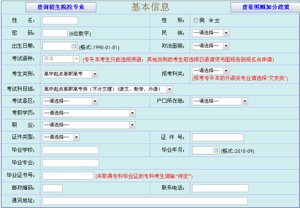 考生类别:报专科的选择:高中起点高职高专;报专升本的选择:专科升本科类