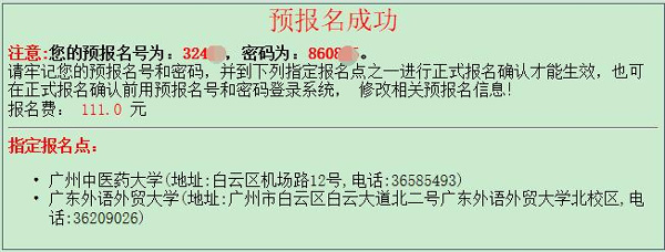 第六步:记录预报名序号和密码。预报名成功后,将预报名号填写在身份证和毕业证书复印件(复印在一张A4纸同一面 此复印件在现场确认报名时要提交)右上角。